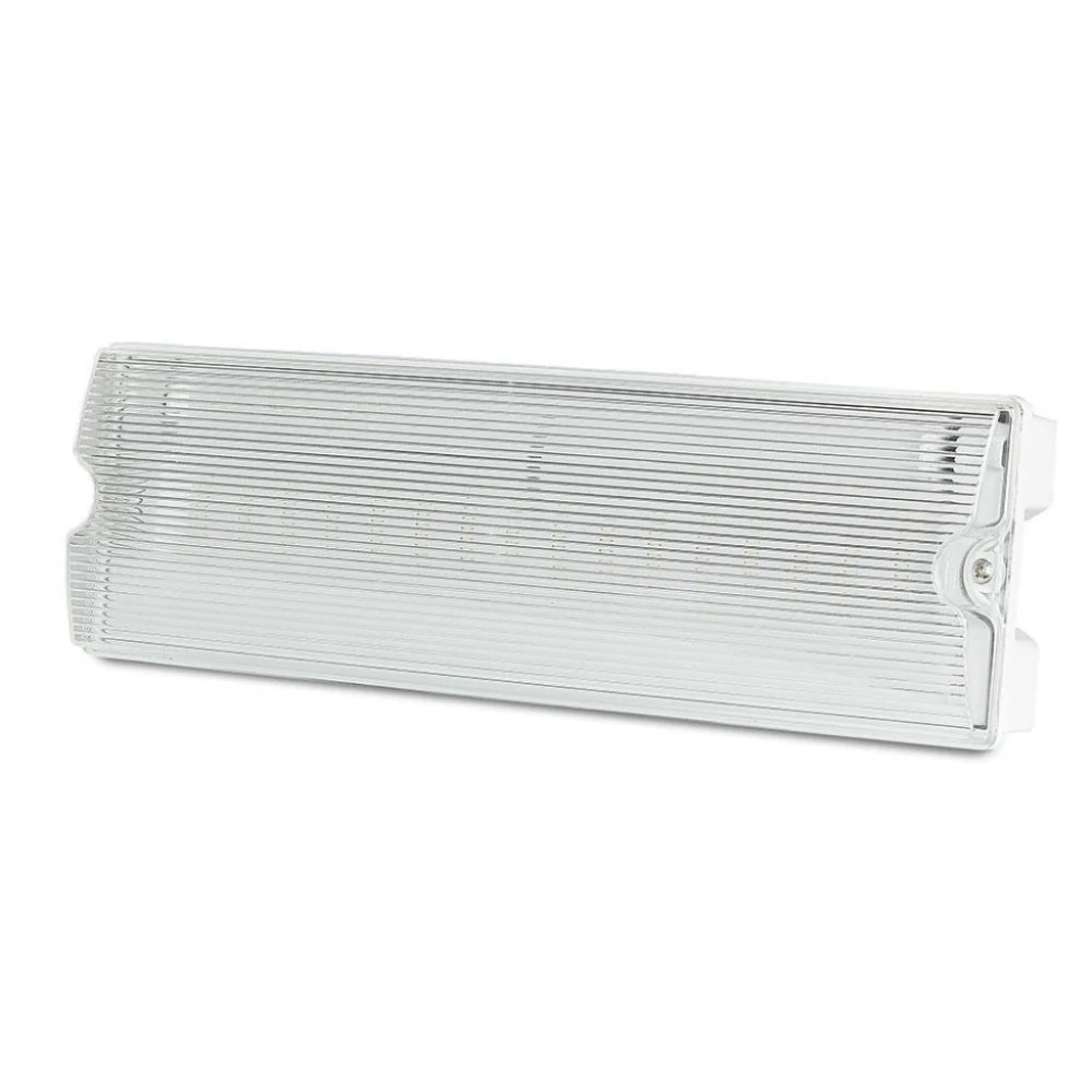 Nouzové LED svítidlo s vestavěným akumulátorem o kapacitě 1200mAh se při výpadku proudu postará až o 3 hodiny nepřerušovaného osvětlení. Při běžném provozu se svítidlo dobíjí a aktivuje se pouze při přerušení přívodu elektrického proudu. Díky vysoké odolnosti proti prachu a vlhkosti IP65 je vhodné do jakéhokoliv prostředí: obchody, schodiště, chodby, ať už v restauraci, divadle nebo v nemocnicích. Lze však instalovat i venku. Životnost zdroje je zhruba 30 000 hodin. Balení včetně piktogramů (nálepky pro označení směru nouzových východů).